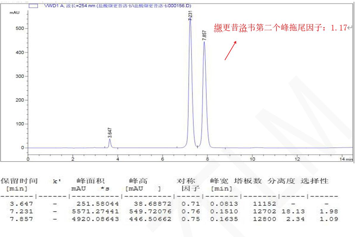 菲羅門液相色譜柱對鹽酸纈更昔洛韋的分析色譜柱 2:Titank phenyl-Hexyl 3μm 150×4.6 mm(貨號:FMF-5551-EONU)