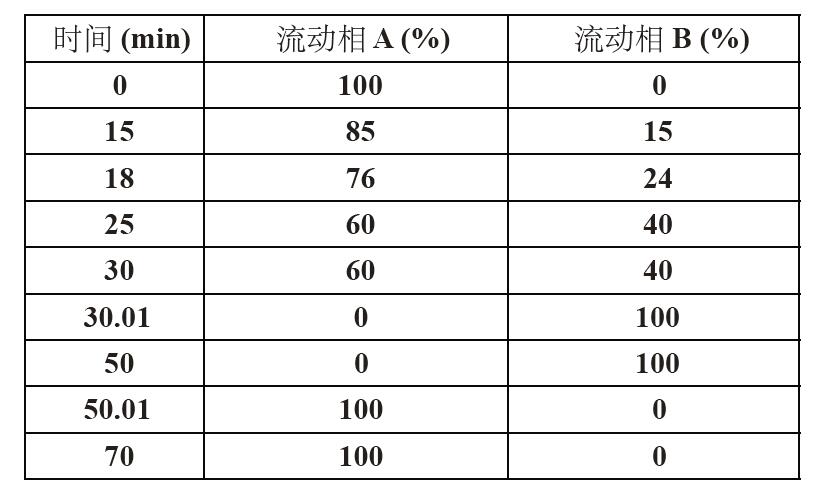 接著可用用戶自己選擇的流動相沖洗色譜柱。流速由0.1mL/min 逐漸升至所需的操作條件,直至基線穩(wěn)定為止。