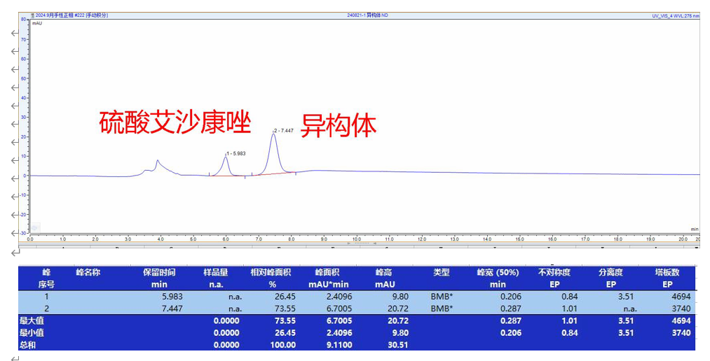 使用菲羅門手性柱進(jìn)行硫酸艾沙康唑及其對(duì)映異構(gòu)體的手性拆分時(shí),通常包括以下步驟: