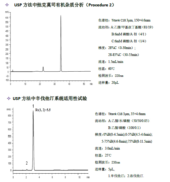 例如紅霉素,它在酸性條件下極易分解,并且需要高溫來維持良好的峰形,普通硅膠基質色譜柱是難以耐受這種分析環境,這時,就需要 Titank系列有機硅膠雜化色譜柱來解決上述分析難題。