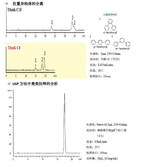 上圖顯示,對易于引起吸附、拖尾及易產生再現性問題的堿性化合物和配位化合物,Titank 系列能獲得穩定的重現性。