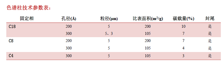 其在純水溶液中不會崩解。提供200 ?和300 ?兩種大孔徑規格,結合多種固定相選擇(C18、